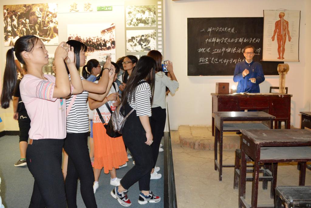 参观校史馆是学习和了解学校历史文化和办学成果的最直接有效的途径,是近年来新生入学教育的重要一课。图文并茂的展板、古朴厚重的实物和热情洋溢的讲解相辅相成,为新同学们呈现出了学校光荣而悠久的历史,激发了新同学们作为湖医药人的使命感和自豪感。