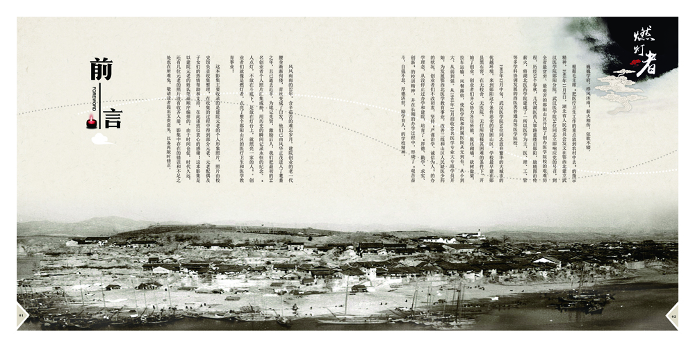 《燃灯者——湖北医药学院建院元老影集》共收录了142幅照片,共68个P,全彩印刷。影集以建院元老姓氏笔画为序展示了元老们的个人形象,并穿插了元老们的一些合影及学校建设照片等,影集以时间为线索,客观、生动地再现了湖医药历史发展的一个侧面,主要是从1965年建校以来各个历史时期的影像资料的集合。校党委书记涂汉军以《天命湖医药》为本影集代序,生动折射了我校半个世纪的沧桑和跌宕浮沉,抒发了湖医药人为实现“升大梦”奋发图强的豪迈之情。